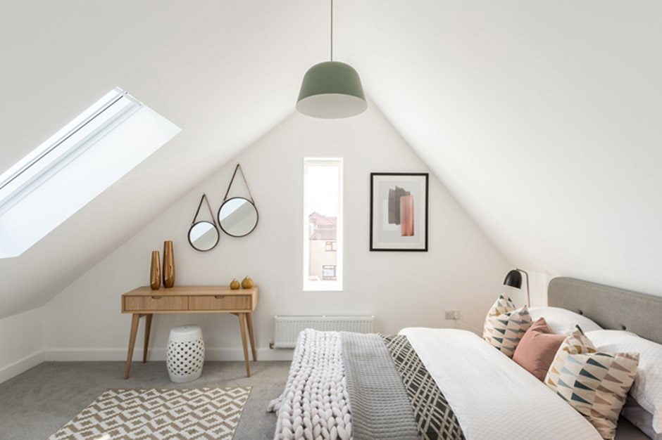 Generous recessed front doors create depth in the elevations and downpipes are set in brick recesses. Internally the units are spacious with living space taken up into the roof spaces.